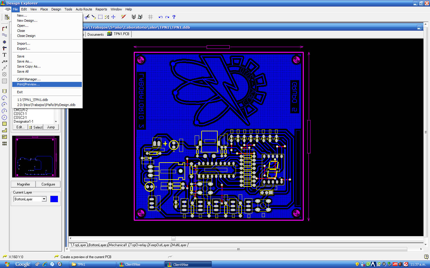 -El marcado de los límites de la placa en la "Keep out layer" y la cota de medida en la "Mechanical 1"( "p"+"d").